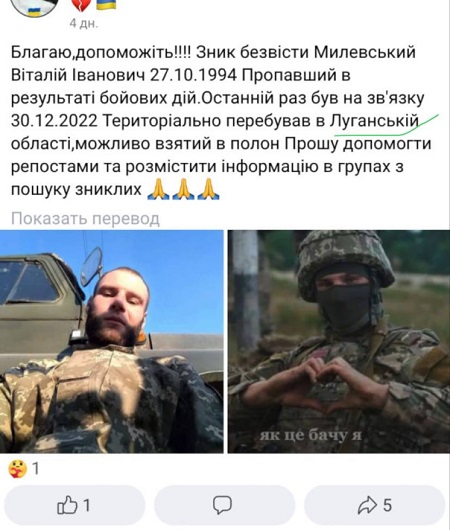 Оказалось, это был матерый тик-ток воин Виталий Милевский, который не выходил на связь с родственниками начиная с 30.12.2022 и активно ими разыскивался. Теперь благодаря видео с нашлемной камеры нашего бойца Виталий нашелся.