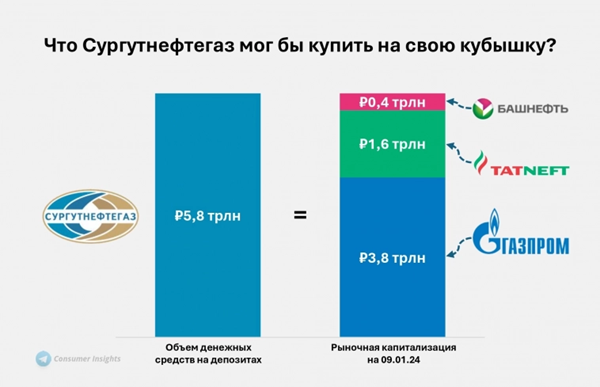 "...Итого, по состоянию на 30 сентября у компании на вкладах и счетах накопились 5 914 077 289 000 рублей. Только вдумайтесь в эту цифру!