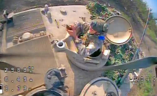 Экипаж украинского броневика в объективе российского FPV-беспилотника за мгновение до отправки к Бандере.