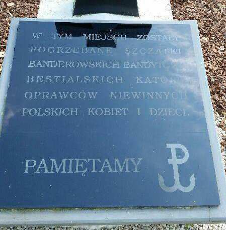 На табличке также размещён польский якорь — символ борьбы за освобождение. По словам историка Анджея Запаловского, почитание боевиков УПА равнозначно тому, чтобы почитать погибших подпольщиков Варшавского восстания и одновременно солдат СС, которые занимались подавлением бунта.
