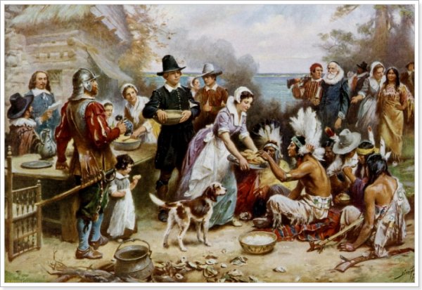Это был день благодарности Господу (ясное дело, что для верующих людей все происходит по воле божьей) и местным жителям, то есть индейцам.