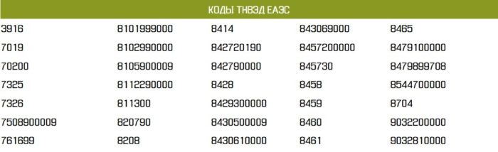 Перечень кодов ТНВЭД, которые опубликовали участники рынка приведён ниже. Возможно, это перечень не полон, однако это уже достаточно широкий список товаров.