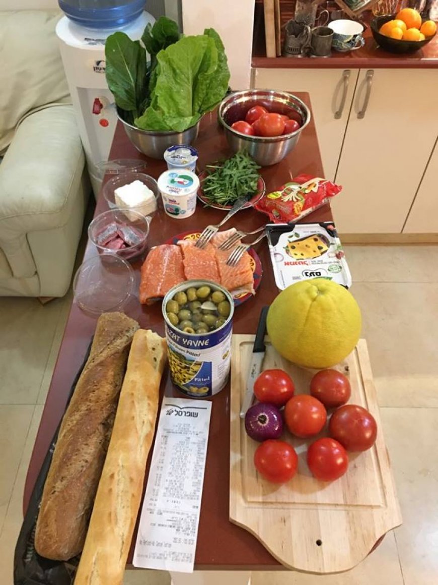 Три куска рыбы, помидоры, хлеб, два салата, руккола, одна луковица, килограммовая банка оливок, две небольших нарезки сыра, селедки грамм двести, фета, два йогурта и что-то типа помело обошлись в 252 шекеля - 1860 гривен или 4600 рублей. Журналист отмечает, что рыбная продукция в еврейском государстве не является чем-то изысканным. Настоящий деликатес – мясо.