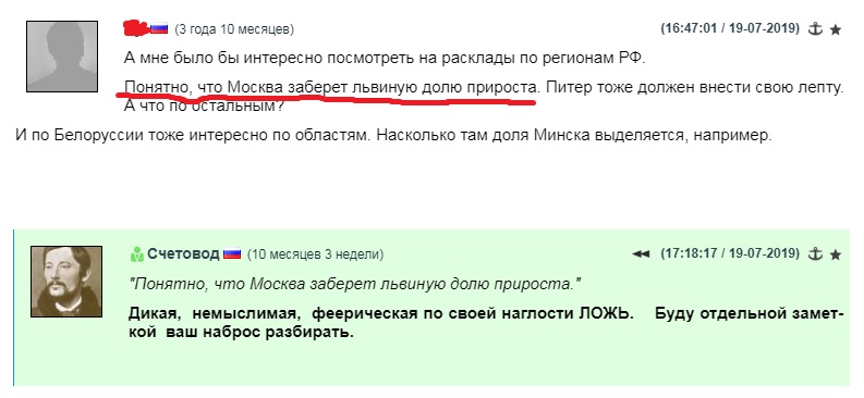 Тут сегодня под статьёй о динамике (1995-2018) жилищного фонда России и Беларуси предполагаемо баталии разыгрались. И среди прочего я наткнулся на комментарий, который в первые секунды просто ошарашил меня своей чистой, незамутненной лживостью. Я бы даже сказал лживостью самодовольной и наступательной....Но!