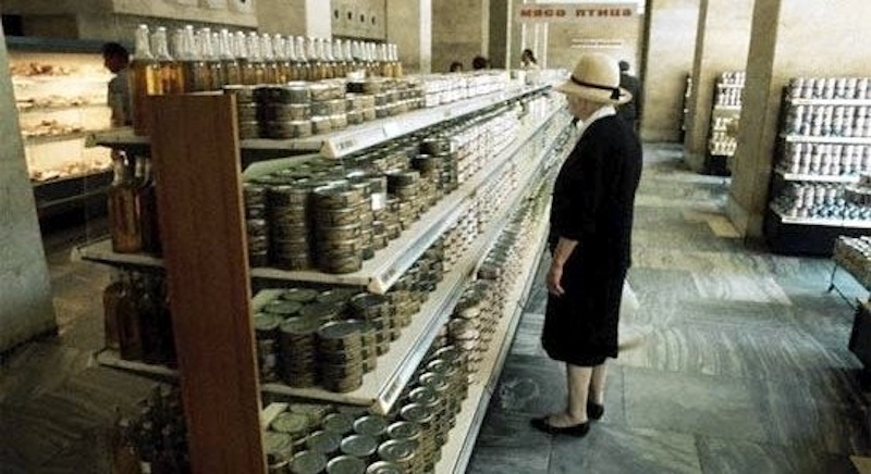 В СССР жили очень неплохие маркетологи и мерчандайзеры. Им удавалось всего лишь десятью или пятнадцатью видами товара заполнить весь магазин и каждую полку, чтобы создать видимость того, что мол, полки ломятся, изобилие. Или же наоборот, растянуть как можно шире всё, что осталось в магазине.